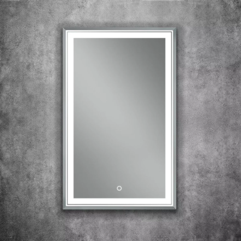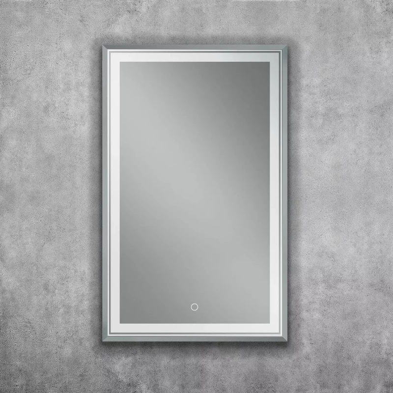 • Зеркало влагостойкое, оснащенное светодиодной LED подсветкой с диммером, гравировкой и сенсорным выключателем