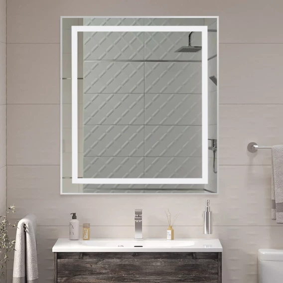 Зеркало с пескоструйным рисунком, встроенной подсветкой, сенсорным выключателем и регулировкой яркости по всему периметру рамы . Тыльная сторона зеркала закрыта светорассеивающим пластиком. Лента SMD 3528, 600 Led, 12V, 9,6 Вт на погонный метр, 6000 К, холодный белый.