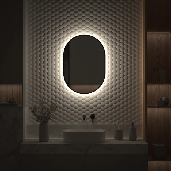 Зеркало Defesto Aura DF 2923 50x70 см, с LED-подсветкой, черный матовый