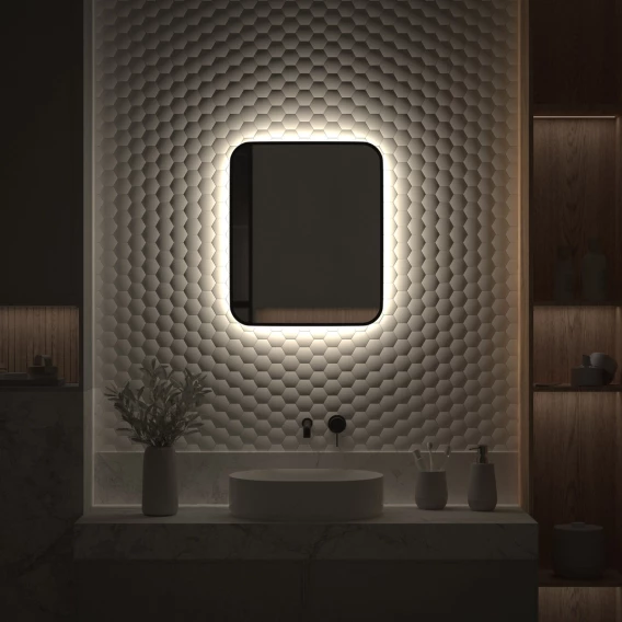 Зеркало Defesto Aura DF 2963 50x60 см, с LED-подсветкой, черный матовый