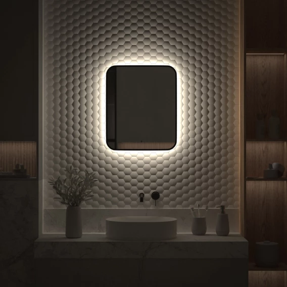 Зеркало Defesto Aura DF 2963R 50x60 см, с LED-подсветкой, сенсорным выключателем, диммером, черный матовый