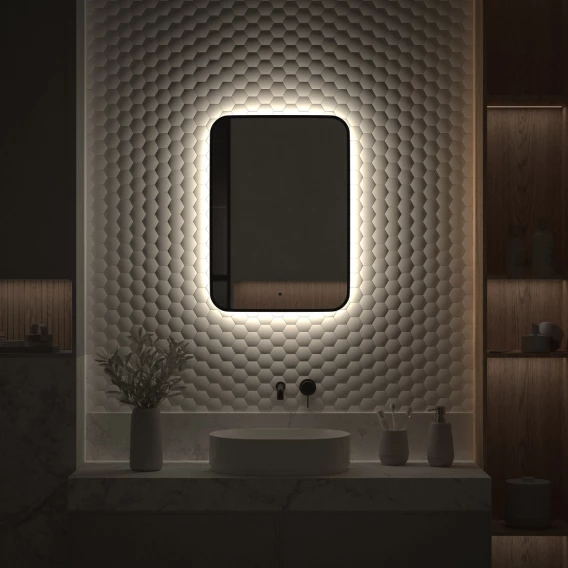 Зеркало Defesto Aura DF 2964R 50x70 см, с LED-подсветкой, сенсорным выключателем, диммером, черный матовый