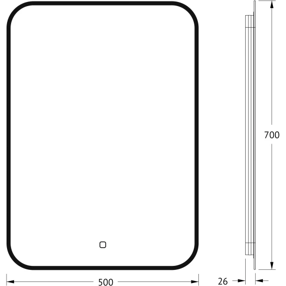 Зеркало Defesto Aura DF 2964S 50x70 см, с LED-подсветкой, сенсорным выключателем, диммером, черный матовый