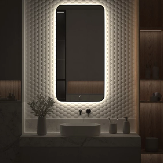 Зеркало Defesto Aura DF 2968S 60x120 см, с LED-подсветкой, сенсорным выключателем, диммером, черный матовый