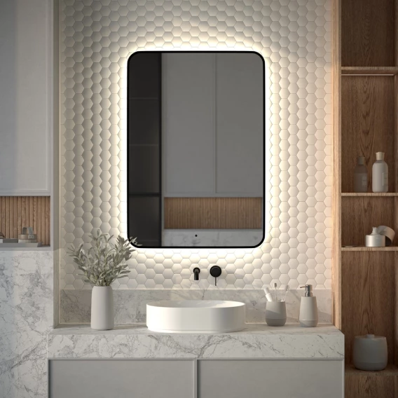 Зеркало Defesto Aura DF 2969R 70x100 см, с LED-подсветкой, сенсорным выключателем, диммером, черный матовый