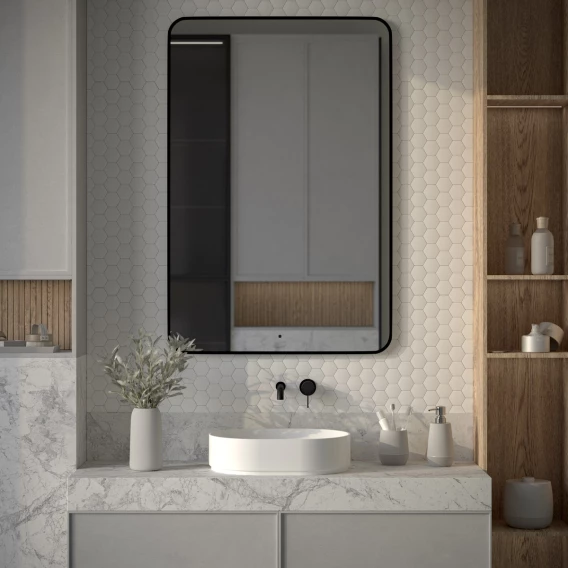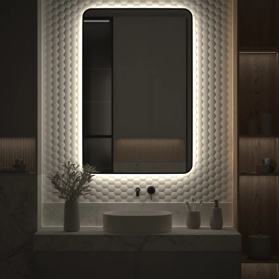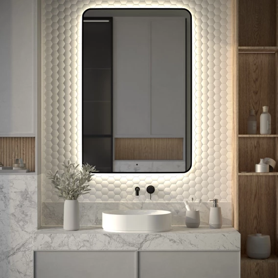 Зеркало Defesto Aura DF 2970R 80x120 см, с LED-подсветкой, сенсорным выключателем, диммером, черный матовый