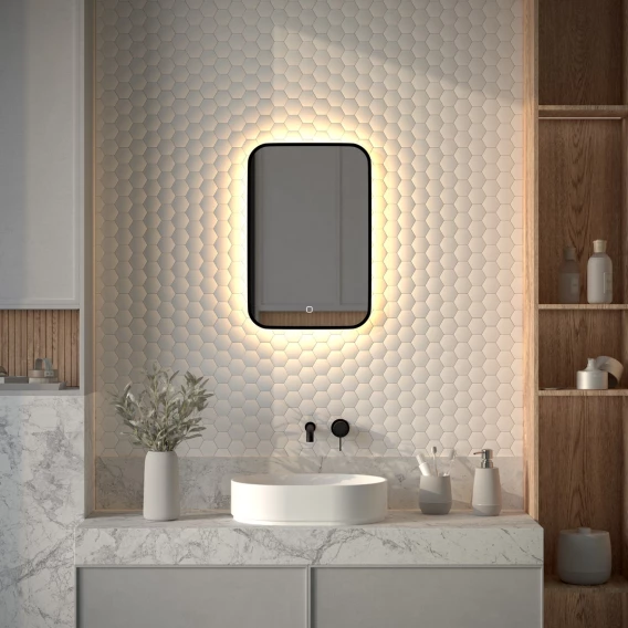 Зеркало Defesto Aura DF 2972S 40x60 см, с LED-подсветкой, сенсорным выключателем, диммером, черный матовый