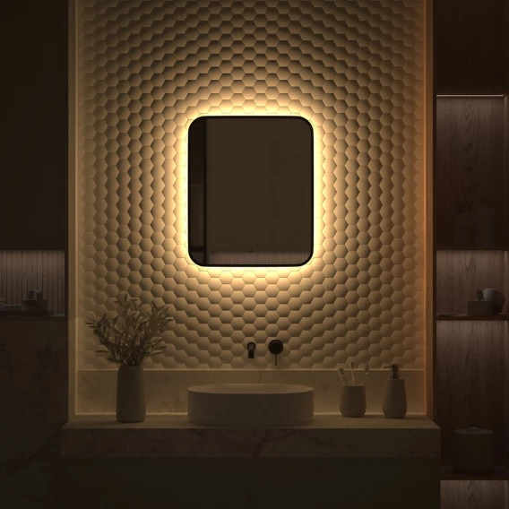 Зеркало Defesto Aura DF 2973R 50x60 см, с LED-подсветкой, сенсорным выключателем, диммером, черный матовый