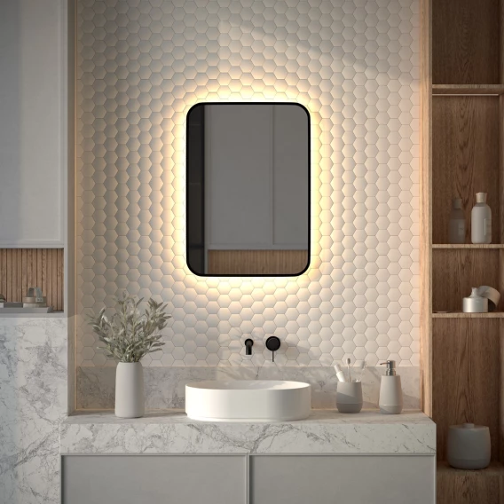Зеркало Defesto Aura DF 2974 50x70 см, с LED-подсветкой, черный матовый