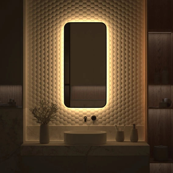 Зеркало Defesto Aura DF 2975 50x100 см, с LED-подсветкой, черный матовый
