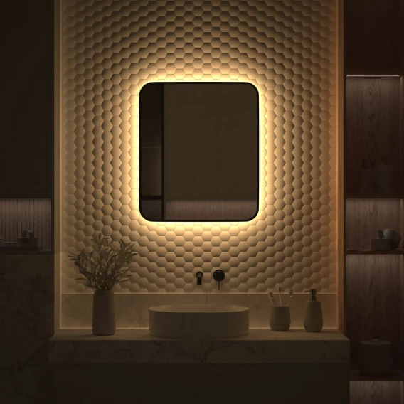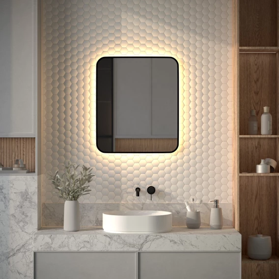 Зеркало Defesto Aura DF 2976 60x70 см, с LED-подсветкой, черный матовый