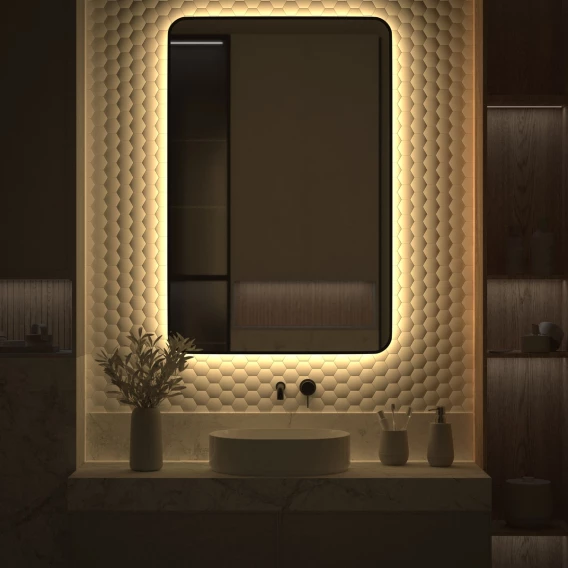 Зеркало Defesto Aura DF 2980 80x120 см, с LED-подсветкой, черный матовый