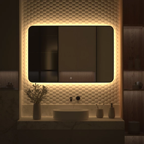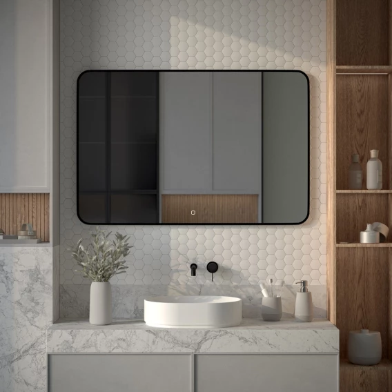 Зеркало Defesto Aura DF 2980SH 120x80 см, с LED-подсветкой, сенсорным выключателем, диммером, черный матовый