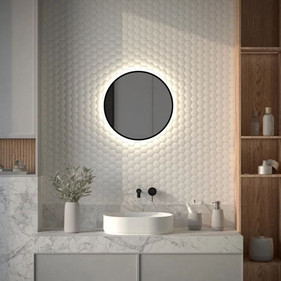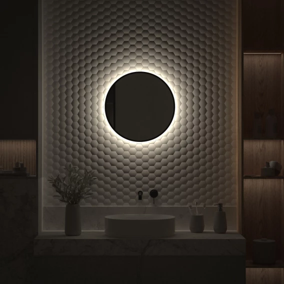 Зеркало Defesto Aura DF 2982 50x50 см, с LED-подсветкой, черный матовый