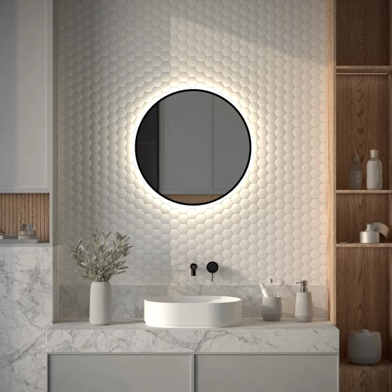 Зеркало Defesto Aura DF 2986 90x90 см, с LED-подсветкой, черный матовый