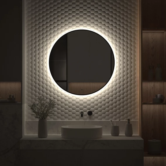 Зеркало Defesto Aura DF 2985R 80x80 см, с LED-подсветкой, сенсорным выключателем, диммером, черный матовый