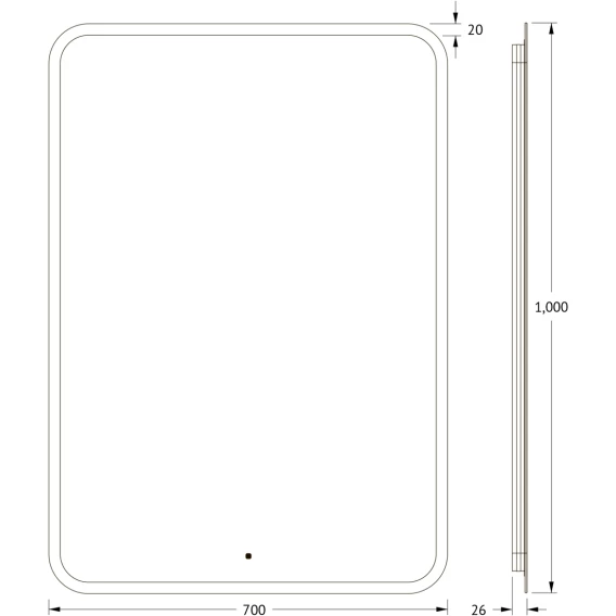 Зеркало Defesto Lume DF 3819R 70x100 см, с LED-подсветкой, сенсорным выключателем, диммером