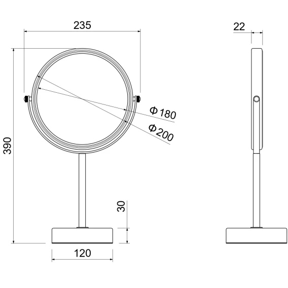Зеркало косметическое Aquatek AQ4914CR с 5x увеличением, настольное, хром
