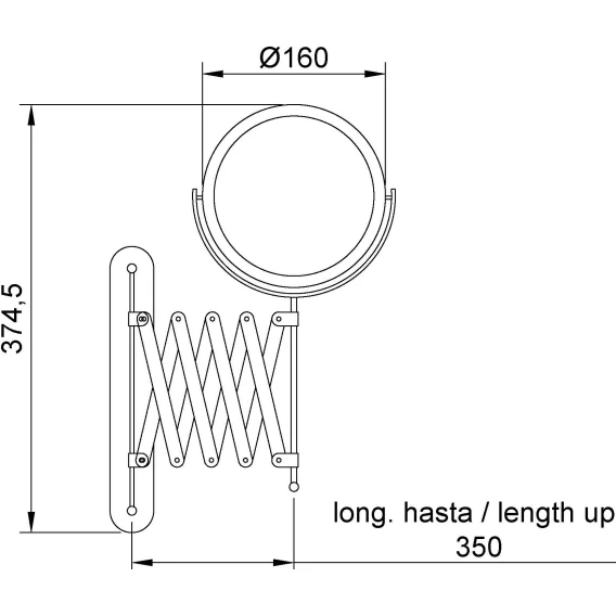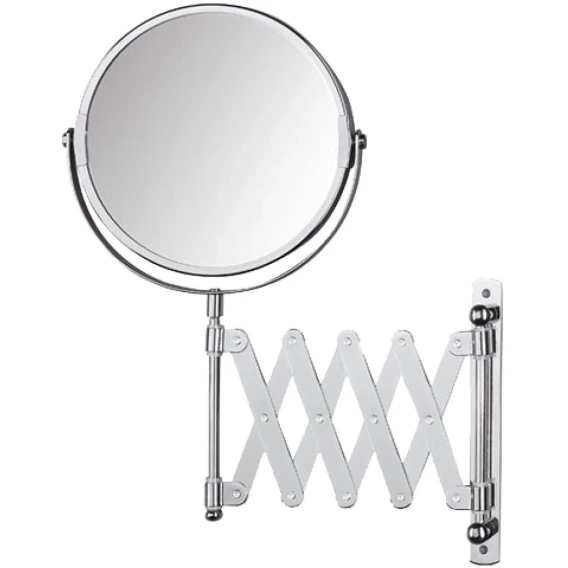 Двустороннее выдвижное зеркало. Одна сторона с нормальным увеличением, другая сторона с увеличением x2. - Настенная установка. - Выдвижной кронштейн. - Глянцевая поверхность.