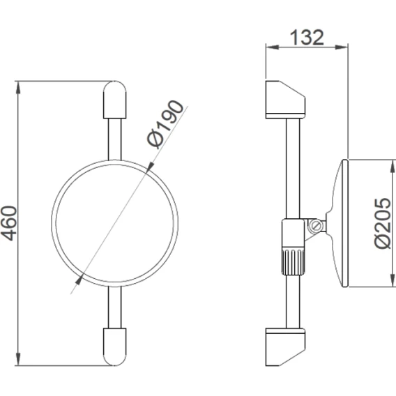 Зеркало с регулируемой высотой. - Настенная установка. - Зеркало, скользящее по вертикальной штанге. - Глянцевая отделка.