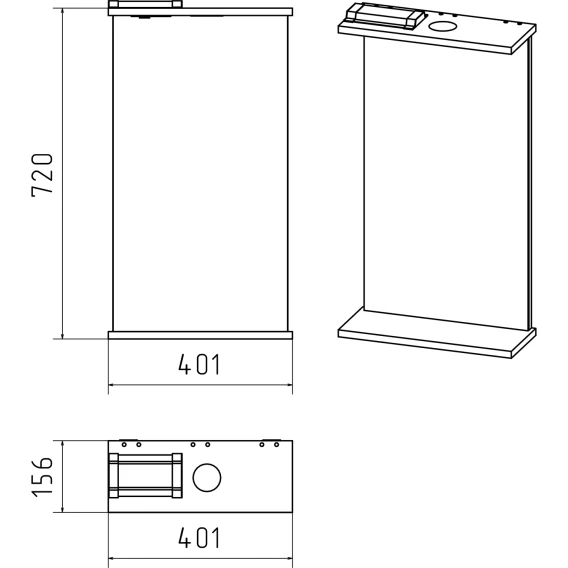 Крепление, Полочка, Подсветка, Выключатель, Розетка