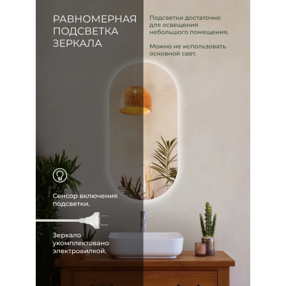 Зеркало Orange Nature ON-60OVZE 60x100 см, с LED-подсветкой, сенсорным выключателем, диммером