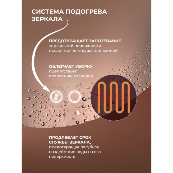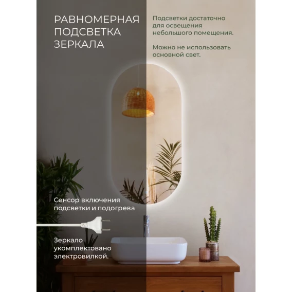 Крепление, LED подсветка, Сенсорный выключатель, Функция анти-пар, Вилка