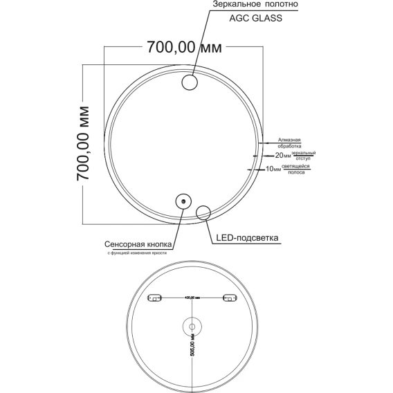Зеркало Orange Sun OS-70ZE 70x70 см, с LED-подсветкой, сенсорным выключателем, диммером