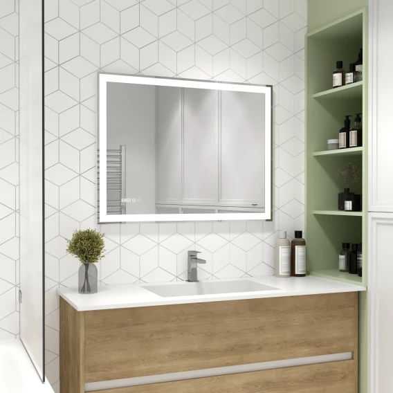 Зеркало Reflexion Double с LED подсветкой, сенсором, часами, акриловый короб 800х600Предлагаем вашему вниманию зеркало с LED подсветкой Reflexion Double 800х600. Строгий классический дизайн зеркала, сочетание зеркального блеска и яркой белой контурной подсветки, подчеркнет технологичность интерьера и будет актуальным долгие годы. Зеркало Reflexion Double прекрасно дополнит интерьер как ванной комнаты, так и прихожей, спальни или гостиной. Использование качественных, современных материалов обеспечивает долгий срок службы изделия. Защита по стандарту IP44 позволяет эксплуатировать изделие в помещениях с повышенной влажностью. Сенсорный датчик включения невероятно удобен в использовании. Яркие светодиоды холодного свечения обеспечивают равномерную подсветку и создают уют в помещении. Отличное зеркало для макияжа. Встроенные часы помогут вам быть в ритме жизни. Зеркало визуально расширяет пространство. Надежная упаковка защищает зеркало во время доставки. Зеркало Reflexion станет отличным подарком вашим близким и любимым.Reflexion – создает уют и тепло Вашего дома