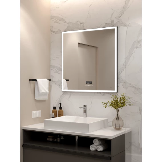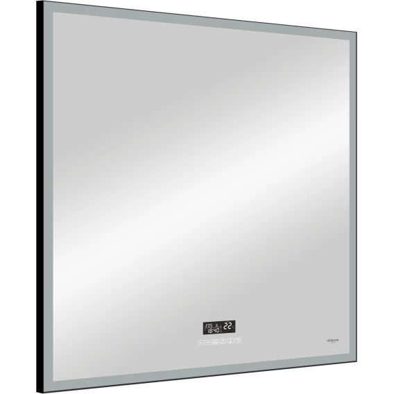 Зеркало Reflexion Ghost с LED подсветкой, сенсором и часами 800х800Предлагаем вашему вниманию зеркало с LED подсветкой, часами и черной окантовкой Reflexion Ghost 800x800. Зеркальный квадрат - настоящий шедевр наших разработчиков.Reflexion Ghost - новый взгляд на интерьерные решения. Стильный современный дизайн зеркала не оставит равнодушным ваших гостей и будет актуальным долгие годы. Четкие лаконичные грани придают утонченный дизайн и подчеркивают минимализм и технологичность интерьера. Зеркало Reflexion Ghost прекрасно дополнит обстановку как ванной комнаты, так и прихожей, спальни или гостиной. Компактные размеры позволяют разместить зеркало даже в небольших помещениях. Использование качественных, современных материалов обеспечивает долгий срок службы изделия. Защита по стандарту IP44 позволяет эксплуатировать изделие в помещениях с повышенной влажностью. Сенсорный датчик включения невероятно удобен в использовании. Яркие светодиоды холодного свечения обеспечивают равномерную подсветку и создают уют в помещении. Встроенные часы помогут вам быть в ритме жизни. Отличное зеркало для макияжа. Тонкая черная рама создает неповторимый эффект, зеркала выглядит легким, воздушным, визуально расширяет пространство. Надежная упаковка защищает зеркало во время доставки. Зеркало Reflexion станет отличным подарком вашим близким и любимым.Reflexion – создает уют и тепло Вашего дома.
