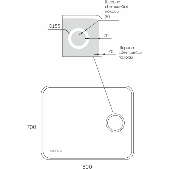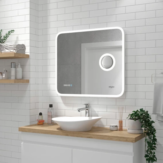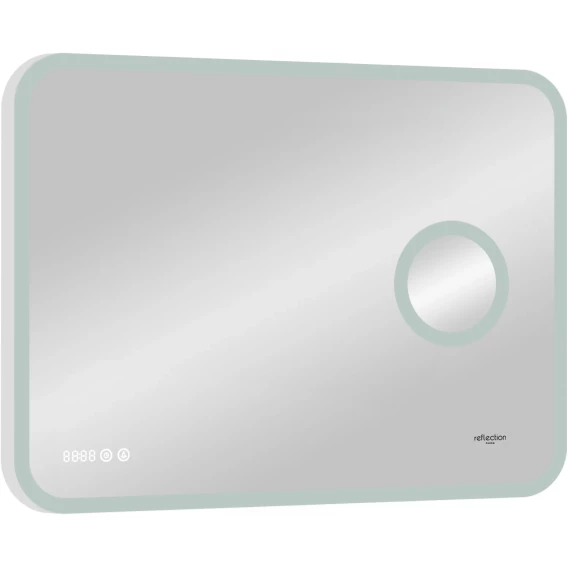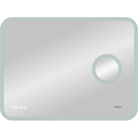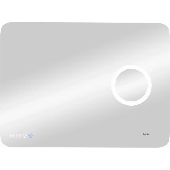 Зеркало Reflexion Point с LED подсветкой, сернсором, увеличительным зеркалом и часами 800х700Предлагаем вашему вниманию зеркало с LED подсветкой, встроенным макияжным зеркалом и часами Reflexion Point 800х700Reflexion Point - сочетание красоты и функциональности. Стильный современный дизайн зеркала дополнен макияжным зеркалом с подсветкой и увеличением, а также лаконичными электронными часами. Скругленные грани придают утонченный дизайн и безопасны для ваших детей. Зеркало Reflexion Point прекрасно дополнит интерьер как ванной комнаты, так и прихожей, спальни или гостиной. Компактные размеры позволяют разместить зеркало даже в небольших помещениях. Использование качественных, современных материалов обеспечивает долгий срок службы изделия. Защита по стандарту IP44 позволяет эксплуатировать изделие в помещениях с повышенной влажностью. Сенсорный датчик включения невероятно удобен в использовании. Яркие светодиоды холодного свечения обеспечивают равномерную подсветку и создают уют в помещении. Отличное зеркало для макияжа. Зеркала выглядит легким, воздушным, визуально расширяет пространство. Надежная упаковка защищает зеркало во время доставки. Зеркало Reflexion станет отличным подарком вашим близким и любимым.Reflexion – создает уют и тепло Вашего дома.