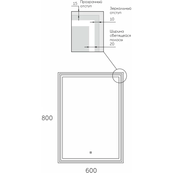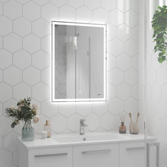 Зеркало Reflexion Pretty с LED подсветкой,сенсором 600x800Предлагаем вашему вниманию зеркало с LED подсветкой и прозрачной окантовкой Reflexion Pretty 600х800.Reflexion Pretty - новое прочтение классики интерьерных решений. Стильный современный дизайн зеркала не оставит равнодушным ваших гостей и будет актуальным долгие годы. Четкие грани подчеркивают технологичность и контраст. Зеркало Reflexion Pretty прекрасно дополнит интерьер как ванной комнаты, так и прихожей, спальни или гостиной. Компактные размеры позволяют разместить зеркало даже в небольших помещениях. Использование качественных, современных материалов обеспечивает долгий срок службы изделия. Защита по стандарту IP44 позволяет эксплуатировать изделие в помещениях с повышенной влажностью. Сенсорный датчик включения невероятно удобен в использовании. Яркие светодиоды холодного свечения обеспечивают равномерную подсветку и создают уют в помещении. Отличное зеркало для макияжа. Отсутствее рамы создает парящий эффект, зеркало выглядит легким, воздушным, визуально расширяет пространство. Надежная упаковка защищает зеркало во время доставки. Зеркало Reflexion станет отличным подарком вашим близким и любимым.Reflexion – создает уют и тепло Вашего дома.