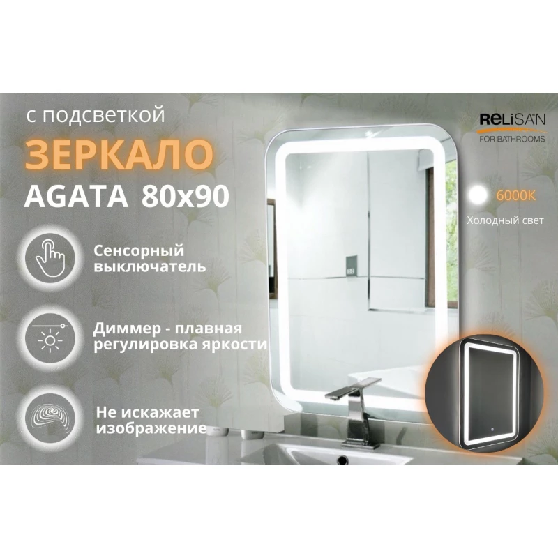 Настенное зеркало Агата — это стильное и функциональное решение для ванной комнаты. Встроенная светодиодная лента даёт яркое, равномерное холодное свечение (6000К), а сенсорное управление и диммер позволяют регулировать яркость в одно касание.