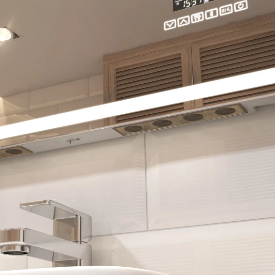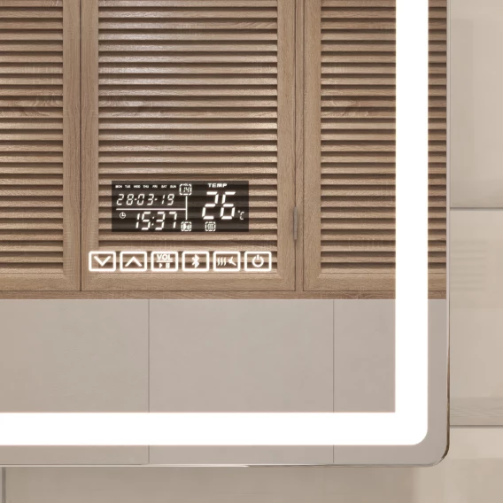 LED подсветка, Bluetooth, Динамик, Сенсорный выключатель, Функция анти-пар, Электронные часы