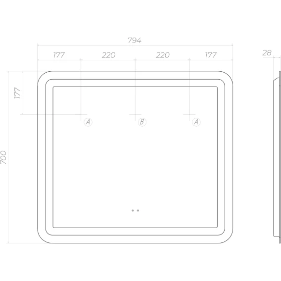 Зеркало Vigo Jess Classic 241 79,4x70 см, с LED-подсветкой, сенсорным выключателем