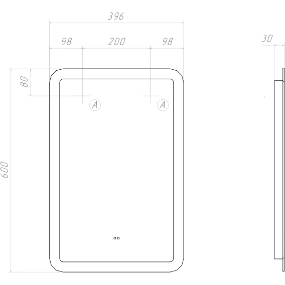 Зеркало Vigo Wing Classic 079 39,6x60 см, с LED-подсветкой, сенсорным выключателем