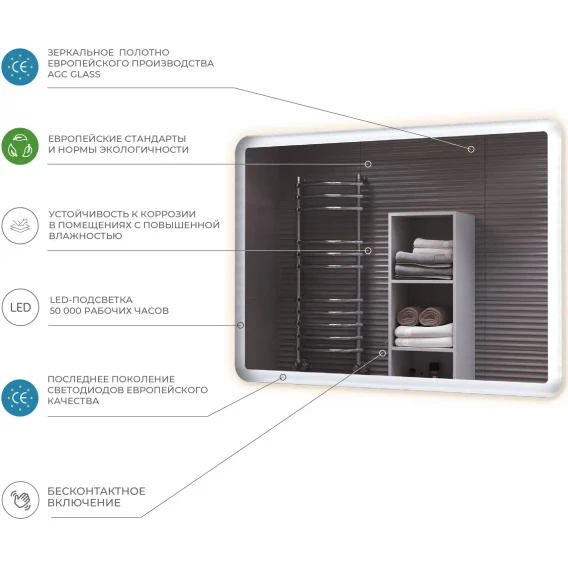 Зеркало Vigo Wing Classic 081 60x60 см, с LED-подсветкой, сенсорным выключателем