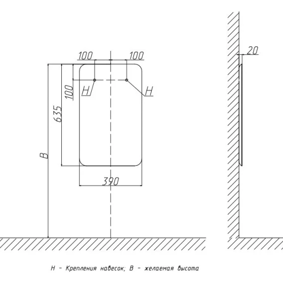 Зеркало 39x63,5 см Velvex Bio zkBIO.40-21