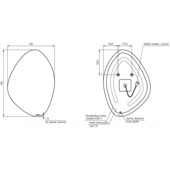 Крепление, LED подсветка, Сенсорный выключатель, Вилка
