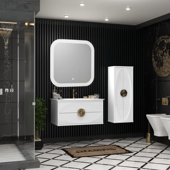 Комплект мебели белый глянец/золото 91 см Opadiris Ибица