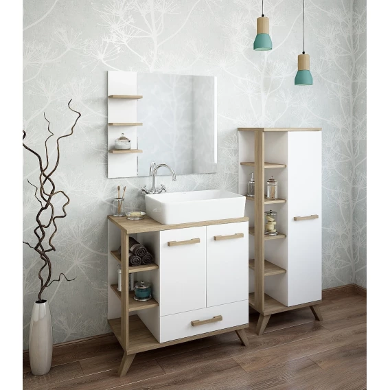 Комплект мебели белый матовый/вяз швейцарский 80 см Sanflor Ингрид C000005876 + 4640021064269 + C000005875