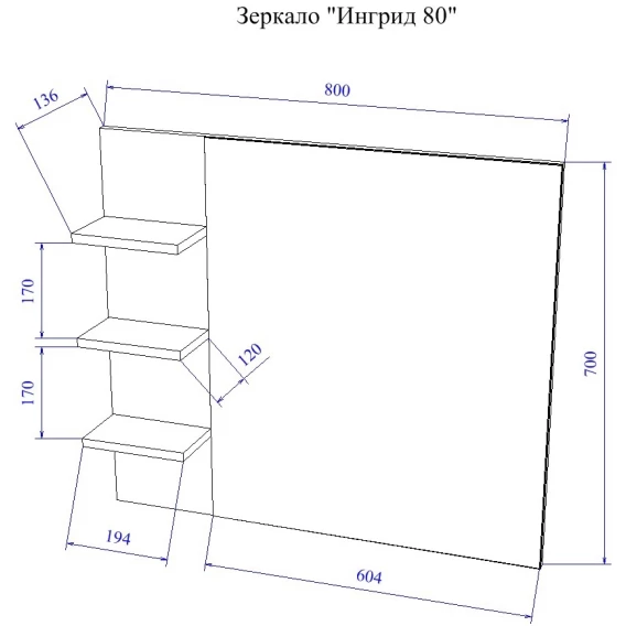 Зеркало 80x70 см белый матовый/вяз швейцарский Sanflor Ингрид C000005875
