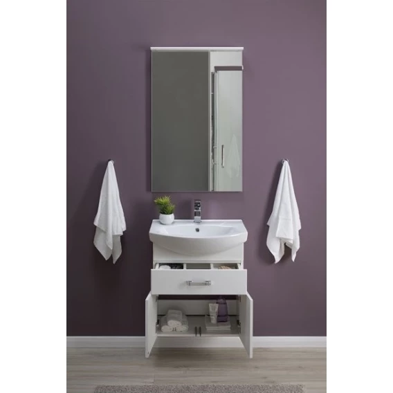 Тумба с раковиной белый глянец 46,5 см Санта Марс 700239 + FOCTEP50