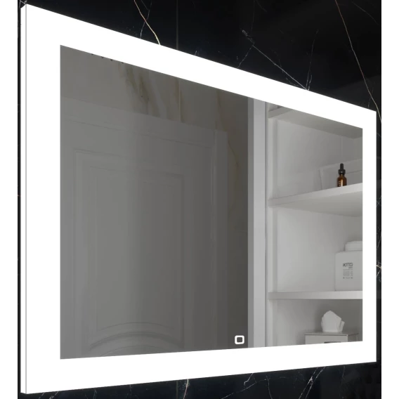 Зеркало для ванной комнаты с LED подсветкой и сенсорным выключателем. Потребляемая мощность 27 W. Класс защиты IP44. Светильник LED (LED лента) (встроено), блок питания (встроено); сенсорный выключатель (встроено); крепление зеркала (кронштейн с крюком), вилка, сетевой шнур