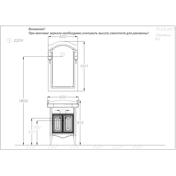 Зеркало 60x101,1 см светлый орех Opadiris Лоренцо