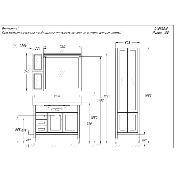Комплект мебели светлый орех 106 см Opadiris Мираж