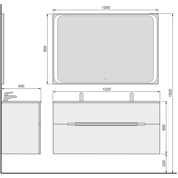 Комплект мебели белый 122 см Jorno Modul Mol.01.122/P/W + Mol.08.120/W + Mol.02.120/W