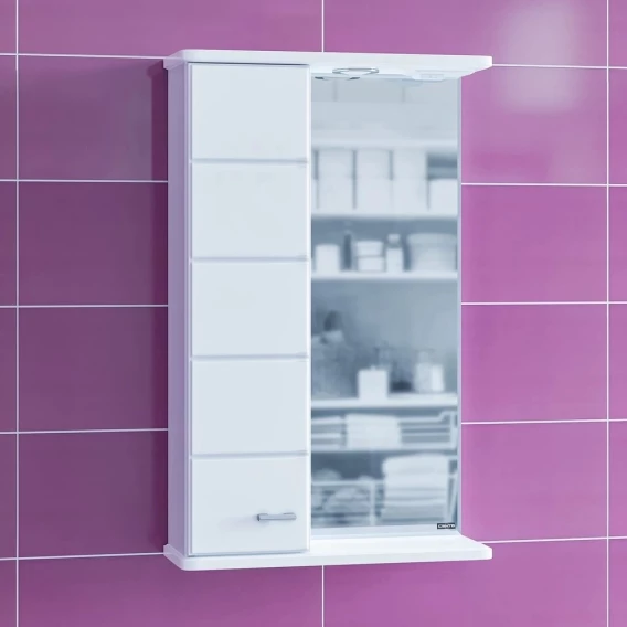 Зеркальный шкаф 50x76 см белый глянец Санта Омега 107001