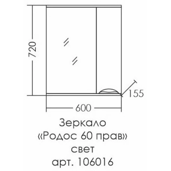 Зеркальный шкаф 60x72 см белый глянец Санта Родос 106015