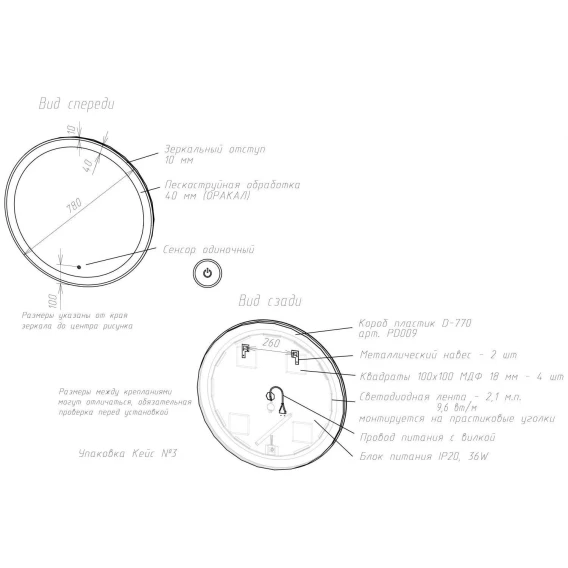 Крепление, Подсветка, Сенсорный выключатель